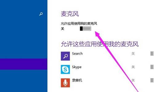 5、在打开麦克风后,还可以设置指定的程序是否使用麦克风,只要打开或关闭使用麦克风程序右侧的滑块就可以,这样就可以让指定的程序打开或关闭使用麦克风。