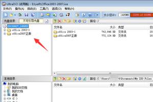 4、选中ISO文件后,里面的内容就可以显示出来了。这里加载了office2003和2007的集合ISO文件。