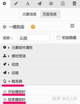 3.layer页面中的交互设置。可对layer页面中的元素设置触发器,目前可实现除了常规的触发器行为,还有视音频播放等。设置如图: