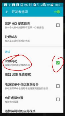 二、打开手机的“USB”调试:设定>开发者选项,在“USB调试”后打钩。