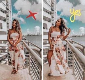 拍照时,身体一定不能死板,要巧妙的运用身体线条感,错向调整腿部与手臂的姿势,做到左右平衡,摆出享受拍照的表情,这样的照片99%都能成功!