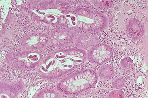 由于细菌的大量繁殖和毒素的作用,可以迅速引起浅筋膜组织的炎症,形成组织的广泛性充血、水肿,皮肤和皮下组织坏死并液化,从破溃创口渗出,恶臭难闻。同时病变迅速扩散。如果病情得不到有效的控制,病人可迅速出现多器官功能障碍综合征等,而危及生命,死亡率达30%以上