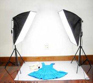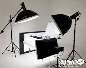 一般情况挂拍平拍两个柔光箱70cm即可~300w-600w的灯~如图很简单