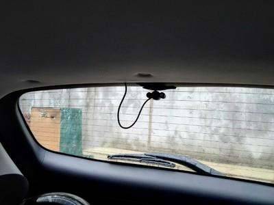 2、后面的安装一种是将后方摄像头安装到后玻璃中央上方,另一种要穿过后备箱,沿着后备箱边缘走线,再安装到车牌灯罩上。调好角度即可。