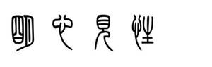 这是个方章,不是标准篆字,是类似金文大篆的字体。从上向下,从右向左看,是4个字:明心见性。属于闲章。