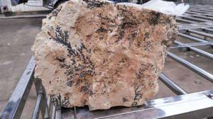 这些看起来象藻类化石的石块,不是化石,上面的花纹脉络是一种被称为「锰华」的物质。在自然界中,如果水渗入到地下的石层裂隙中并长期停驻,水中的矿物质如锰、铁等就会渗透到石体中,久而久之会发生化学反应,随後便形成了类似植物化石的图案。