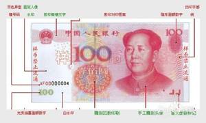 第五套人民币99版100元券在保留了第四套人民币较为成功的防伪技术的基础上,又采用了一些新的具有世界先进水平的防伪技术。其中大众防伪特征a主要有以下几个方面: