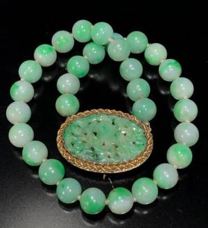 目测是石英岩玉,石英岩玉市场价值不高,这么一串带坠子一起应该不会超过三百元。
