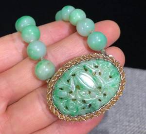 这个挂件是翡翠A货的,糯种的飘绿,应该是八九十年代创汇时期的东西,所以种都很一般,镶框应该是银镀金的,这种东西市场价格不是很高,除非种水颜色好,千元以内应该可以买到。