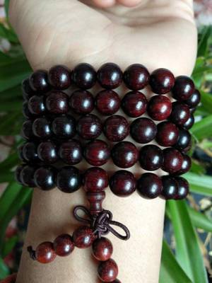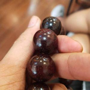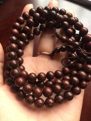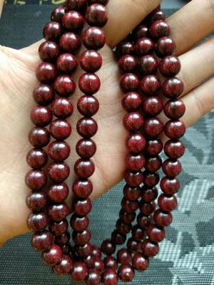 通过照片来看这条16的珠子是紫檀的,但老不老料,多少年算是老料?这其实没有没有严格的法律依据与标准的,一切都是相对的。只不过是老料相对来讲油性更好些而已,新料有好料,老料也有差料。最关键的还得是看油性。 照片中的珠子属于是半新不老的料子,顺纹,正圆,小孔,无明显裂补,瑕疵。质地中等。油性中等。底色不是很干净。珠子略有一定程度的氧化。无金星,牛毛,水波,瘿子,瘤疤等特征。属于是入门级的通货。适合学习,练手,把玩儿。无收藏价值。参考价格2-300左右!渠道不同,商家成本不同,购买时间不同,价格会有一定程度的溢价,所给的价格仅供参考。 确认是否是紫檀的最好方法就是闻味道,此种方法破坏性最小,验有没有懂行的,帮我看一下这个是不是印度的小叶紫檀?大概价值有多少?