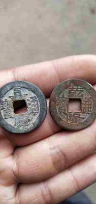 老师们这俩铜钱值多少钱 小的是母钱吗?