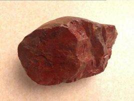 红碧石 :红色碧石的泛称。我国甘肃镜铁山铁铜矿床中产有一种红碧石。其矿物成分主要是石英,次为赤铁矿及少量菱铁矿、铁白云石、组云母等,并呈层状、透镜状与铁铜矿层紧密共生。颜色最常见为朱红色;含铁高者为暗红色;含铁低的呈淡红色。不透明。硬度近于7。裂隙较少。抛光性能良好。块度一般厚10~20cm,最大可达30~40cm。有的夹杂有赤铁矿或菱铁矿或铁白云石的夹层或细脉。宜用于制作中低档的小型玉器。