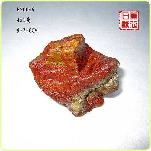 红色碧玉岩,能值点钱,打磨抛光后配个底座,市场价能卖个几百元。