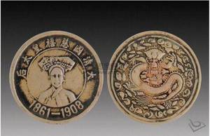 慈禧皇太后纪念币:发行只有3000枚,真品是这样的。图取自2012年上海2012年秋季大型艺术品拍卖会,起拍价1990000.