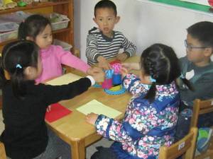 在教幼儿握剪刀时,可采用幼儿喜欢的手指游戏:大拇指是爸爸,食指是妈妈,中指是姐姐,编成儿歌 “ 小剪刀,向前伸,两个山洞竖起来,上面山洞爸爸钻,下面山洞妈妈姐姐钻进去,小剪刀和宝宝乐开花。” 这样小朋友都很开心地做起了手指钻山洞的游戏,在做的过程中幼儿很快就会掌握了正确的握剪刀的方法。