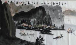 国画小桥人家,很有意境。作者署名云石,不熟悉此作者,所以不好评价其价值。