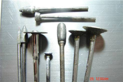 用金刚结磨头也有叫:磁砂E磨头,那个去皮很快,但是必须要边磨边滴水,否则磨头磨损很快