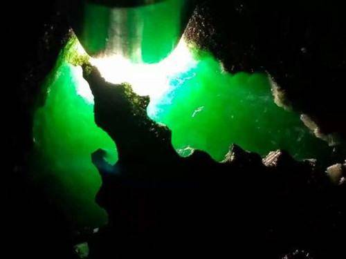 第二种两层结构:这种翡翠原石,由于没有雾层或者不完整的雾层,石皮下就是翡翠,如下图