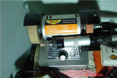 翡翠原石如何去皮抛光,介绍一下需要使用到的工具,电动工具可以是吊磨机或牙机,耗材是磨头、毛刷、皮陀和钻石抛光粉等。