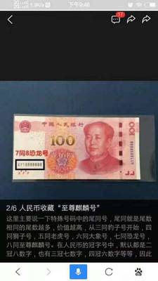 还有就是我们必须要了解到一个问题,那就是人民币本身就是有价值存在的,但如果我们将这种编号的人民币拿去收藏,那么很有可能人民币就没有办法获得很好的流通,可是在我们的市场上面,人民币本身就是流通的货币,要流通起来,发挥自己的作用,如果我们随意地将人民币珍藏,那么对国家的影响是非常严重的,因此我们必须要明白这些问题,不过当然有一些特殊的人民币,珍藏的价值是非常大的,就比如说像这种有着特殊数字的人民币就具有一定的珍藏价值。
