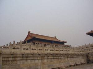 桥的两面有玉石雕砌而成的栏杆。中间一座雕有蟠桃图案,封建时代专供皇帝通行;中间四座雕着荷花,专供大臣通行。桥的东西两边各有一座高耸挺拔的华表。华表使用白玉石雕成,刻有蟠桃花纹,浑圆精致,映衬着背后的城楼,更增加了天安门的雄伟气势。华表顶端雕成一个蹲着的野兽,名叫犼(hǒu),又叫"望君归",意思是盼望着外出的帝王赶快回来。