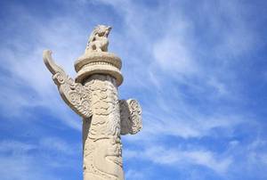 很久很久以前,在尧舜时代,华表是部落时代的一种图腾标志,古称桓表。它有道路标志、过路行人留言的作用,那个时候,人们在交通要道设立一个木柱,作为识别道路和标志,后来的邮亭、传舍也用它作标识,它的名字开始时叫作“桓木”或“表木”,后来统称为“桓木”,因为古代的“桓”与“华”音相近,所以慢慢读成了“华表”。在这根木柱上,行人可以在上面刻写意见,因此它又叫“谤木”或“诽谤木”。“诽谤”一词在古代是议论是非的意思,所以它又具有“意见箱”的作用。据史书上记载,尧时的诽谤木以横木交于柱头,指示大路的方向,天安门前的华表仍然保持了尧时诽谤木的基本形状。让华表发生质的演变是从秦始皇开始的。唐代《汉书》记载,真正让华表发生质的演变,是从秦始皇开始的,它由木变石,从广为民用到皇家独享,由告示牌变成了帝王柱、皇权标。从那个时候开始,华表一般采用最坚硬的花岗石打造,头上常盘踞雄狮,周身缠绕蟠龙,完全成了一种皇权的象征。