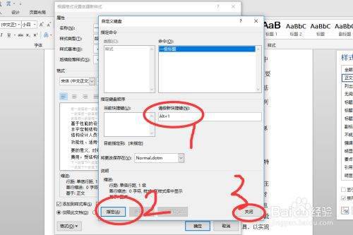 指定快捷键Alt+1,注意要先指定后,再关闭退出,返回前面的界面,单击确定,这样一级标题样式便设置好了。