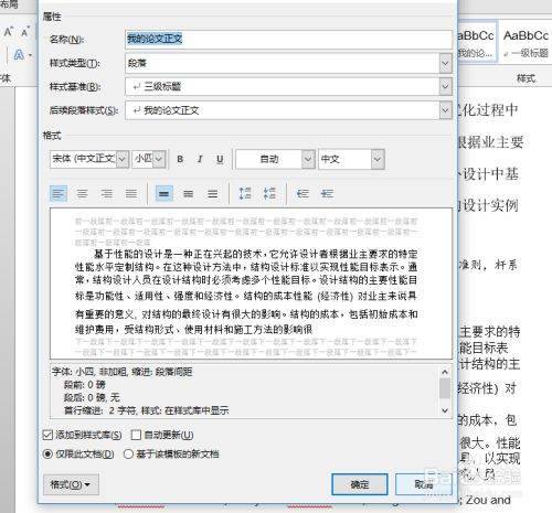 设置正文样式,设置字体(宋体),字号(小四),对齐方式(左对齐),段落(大纲级别正文文本、单倍行距、首行缩进2个字符),快捷键(Alt+4)。