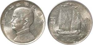 最终国民政府选定了孙中山像帆船银币作为流通货币,孙中山像地球银币和孙中山像嘉禾银币仅仅铸有样币少量流通。孙中山像帆船银币,俗称船洋,正面为孙中山先生肖像,镌刻有民国年份,背面为三桅帆船,壹元分列两旁。