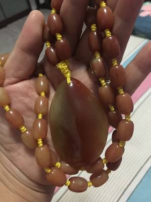 目测是石英岩玉,石英岩玉市场价值不高,这么一串带坠子一起应该不会超过三百元。