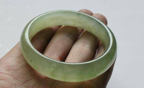 从你的图片上看,这个手镯材质为岫玉。很好的岫玉颜色为绿色,清澈透明。你图片上这只手镯颜色属于灰绿色,这种料到手镯一般价格不会很高的。岫玉全称为岫岩玉,是四大名玉之一。产于辽宁岫岩也因此而得名。岫岩玉的颜色有多种 ,可以分为绿色、黄色、白色、黑色、灰色5种。
