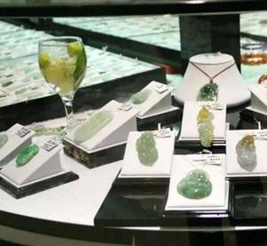 如果翡翠制品很薄,卖家通常会在底部垫一层锡箔纸,颜色就会跳出来,很抢眼。