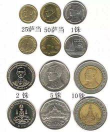 正面是:泰国王普密蓬·阿杜德(拉玛九世)侧面头像。