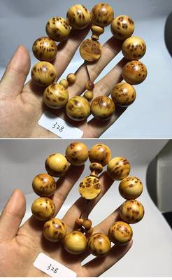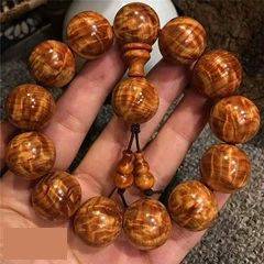 饰品:被做成佛珠手串、手排、平安牌等,广受欢迎,由于树料的油性,做成手串戴久了会越来越油亮,浅木色渐渐变深,甚至会盘成酱紫色.非常具有观赏性。