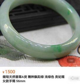 这个是A货糯种飘绿翡翠手镯,石性重色泽偏淡,飘花色泽还可以,内部石纹瑕疵多,玉质结构粗糙,水头差,目测打磨抛光也不是很细,所以有可能是石纹或小裂刺手。类似如图这种类型你可以对比参考,贵妃手镯款价格正常在1500左右,圆镯6000-7000左右,一般打磨抛光得很好的。