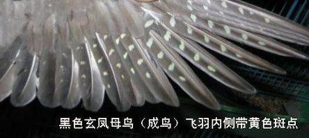 公玄凤鹦鹉飞羽内侧皆为黑色,没有任何的斑点。母玄凤鹦鹉飞羽内侧会有浅黄色的斑点分布;