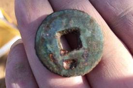 5、摩擦法测试古钱币的真伪。 将锈色满身的钱币的边道,在水泥地上或者在细砂纸上摩擦几下,观察期露出的铜色与同时代钱币的铜色是否相符。若使拼合而成的钱币,摩擦后有可能露出拼合的缝隙,那就是假币。
