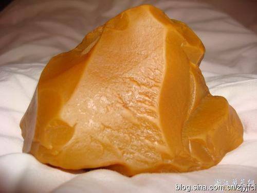 黄蜡石又名龙王玉,因石表层内蜡状质感而得名。是石英岩矿物因为受地质变动影响,与酸性土壤混合,加上酸性土壤附近有地热或火山等自然条件,长期受酸性土壤和地热火山温度的双重催化,变质形成黄蜡石。所以结构紧密,韧性强