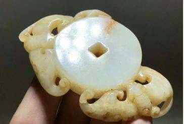 从你的图片上看,这个图案为两只蝙蝠抱着一个铜钱,寓意为“福在眼前”。