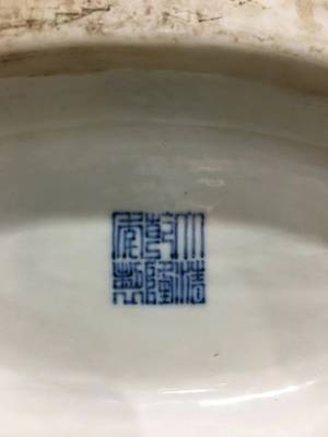 3、看款识形式。从乾隆年制底款的款识形式来看,乾隆年制底款的款识字体工整、青花深沉,个别字体有字体偏斜草率、连笔书写和青花深浅不一的现象。