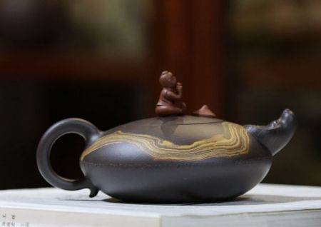 绞泥壶还融合了“光货”的制壶功力和“花货”的奇思妙想,对色彩的要求还非常高。绞泥不同的成形方法,不同的泥料搭配都会产生不同的图案效果,泥色和搭配就好比画家笔下的颜料,想要获得迷人的魅力,需要对火、对泥的掌握分毫不差,才能呈现绞泥壶应有的色彩。