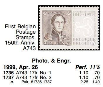 第二张图里面的第三张邮票是比利时1999年发行的“比利时邮票发行150周年”邮票,全套共2枚,图中的邮票是第一枚。