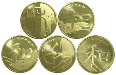 2009年11月26日发行 “和”字书法系列普通纪念币首枚。