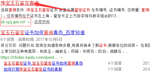 1、百度搜索珠宝玉石鉴定查询。