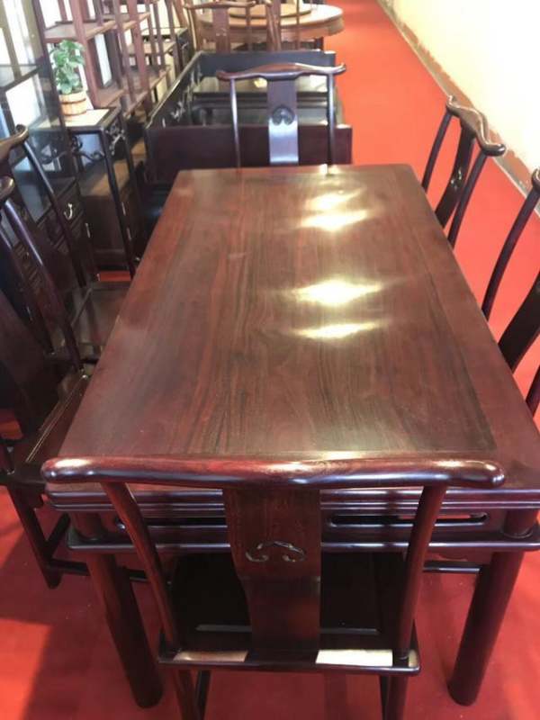 随着市场的发展,血檀逐渐被一部分人任可,其优点日益显现,它集合了紫檀木和花梨木的木性特征,稳定不易开裂、韧性好、硬度高、耐腐蚀耐蛀性强;颜色红而深沉、纹理通直、光泽度较好,无特殊气味。在同等工艺水平下,其成品的家具效果豪不逊色于小叶紫檀。而且其价格亲民,大部分人都能消费,成为主流家具是它未来的趋势。然而由于未被纳入国标红木,有些人还心存疑虑。