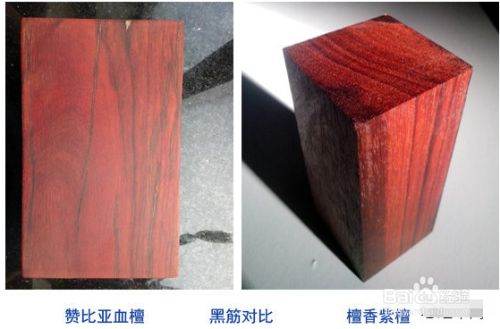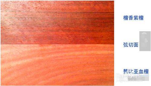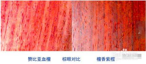 紫檀和血檀基本相同: 血檀的心边也边材区别明显,边材淡黄色,心材深褐色至深紫色,具深色条纹。结构细致。纹 理直,略交错。生长轮比紫檀略明显。原材空心率相比紫檀略低,远不如“十檀九空”。 紫檀的心材和边材区别明显,边材浅黄色,心材的新切面为橘红色,久而久之转为紫红色或黑 紫色。具黑色条纹,结构细腻,生长轮可见但不明显