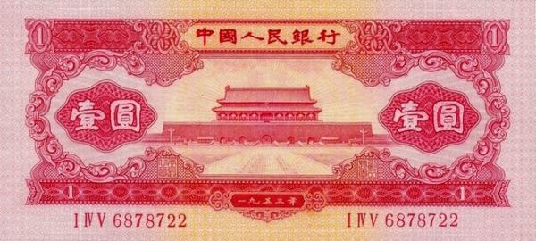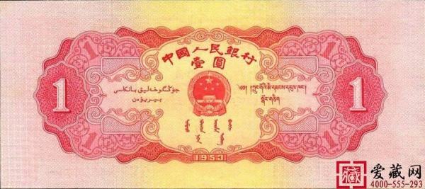 第二套人民币1元纸币。有红色和黑色两个版本,这是红色板。品相完好的,市场价格在几百元到千元之间。