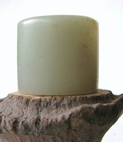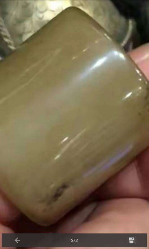 您的这一个玉扳指,是大开门的老的真品;是典型的晚清民初时期的“岫玉扳指”,里面绺裂不少,完整地市场上一般喊价在500元左右;可以当一个品种收藏,一定要好好保存;跟一个我的“和田玉老扳指”