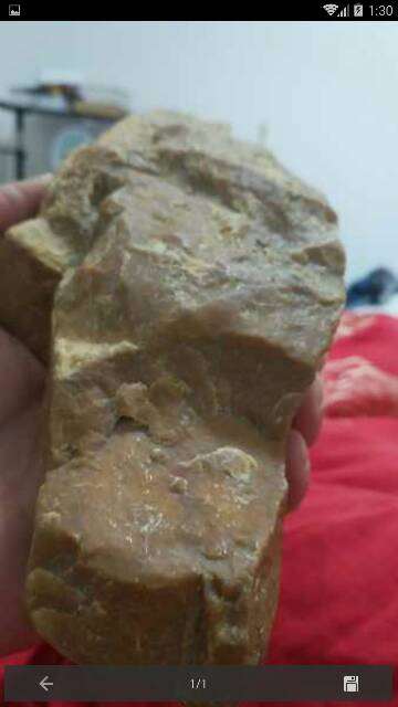 黄蜡石,属矽(硅)化安山岩或砂岩,主要成份为石英,由于其地质形成过程中渗杂的矿物不同而有黄蜡、白蜡、红蜡、绿蜡、黑蜡、彩蜡等品种。又由于其二氧化硅的纯度、石英体颗粒的大小、表层熔融的情况不同,等而下之可分为冻蜡、晶蜡、油蜡、胶蜡、细蜡、粗蜡等,冻蜡可透光至石心,主要产于两广安徽辽宁甚至长江沿线等地区。