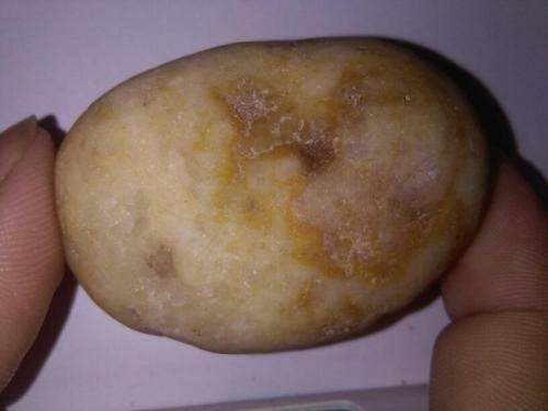 石英质鹅卵石,主要化学成分是二氧化硅,其次是少量的氧化铁和微量的锰、铜、铝、镁等元素及化合物。其形成原因是破碎的岩块,经长距离搬运使棱角消失,形成园形或椭圆形的石子(或称卵石、砾石),其外形大多圆润有形,表面细润光洁,石质坚实,多数呈不规则块状,半透明。表面平坦光滑,具蜡质或玻璃光泽,可刻划玻璃并留下划痕。无臭,味淡。迅速磨擦不易热。今天在河里捡的石头,求专家指点迷津,这是块什么石头?